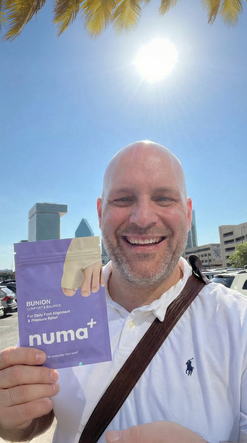 “I’ve had bunion pain for years and finding something comfortable has always been a struggle. Numa+ feels soft, supportive, and doesn’t dig in like other things I’ve tried. I can wear it all day in my shoes and my foot feels so much better by the evening.”